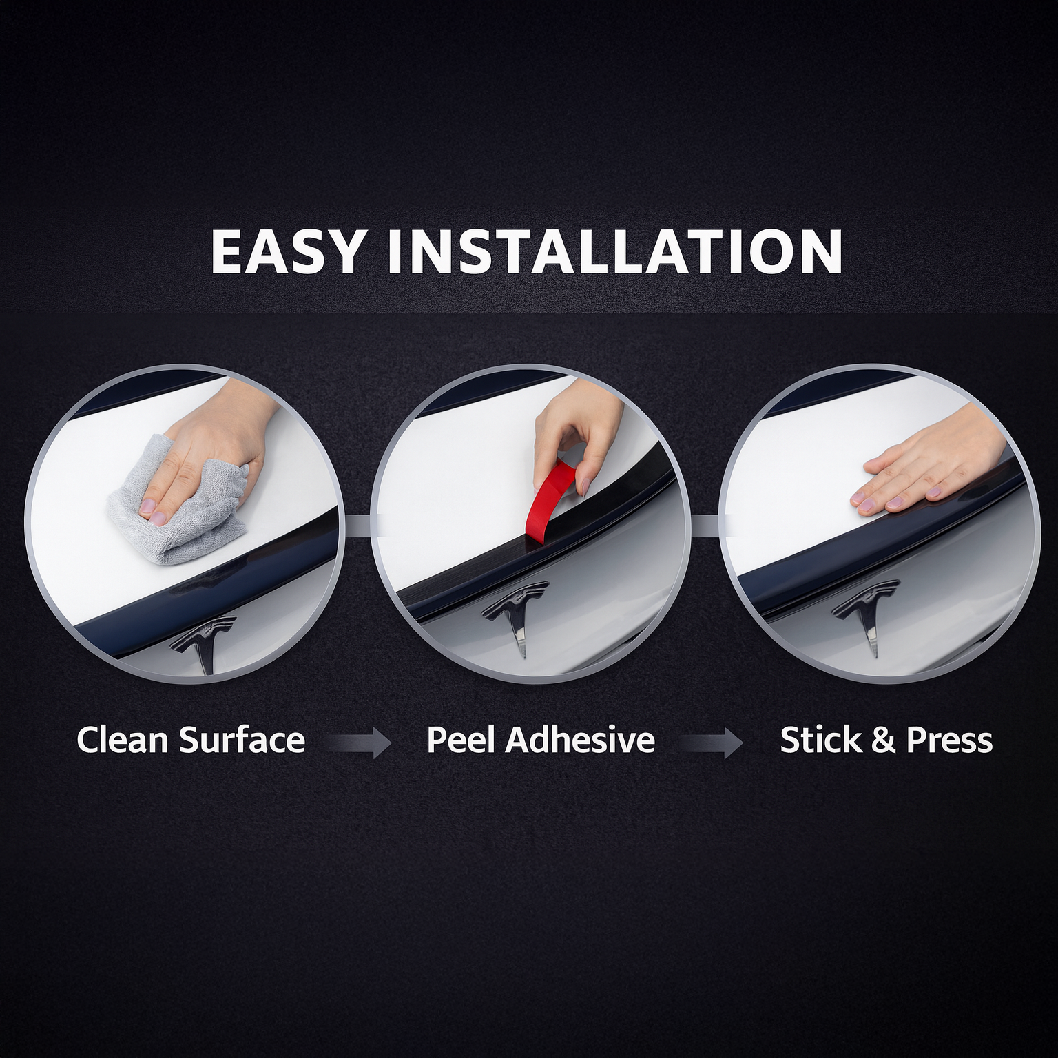 Simple installation process with no drilling required. Clean the surface, position the spoiler correctly, and secure it firmly in place for a tight, gap-free fit.